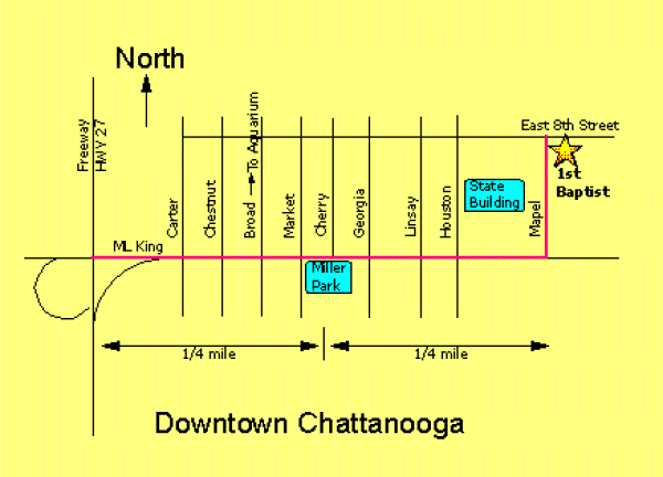 M.L. King Blvd for 3/4 mile. Turn left on Mabel Street and go one block (next to the UTC dorms).